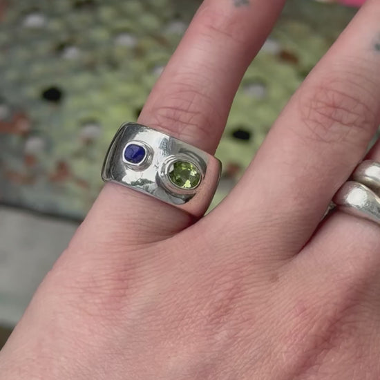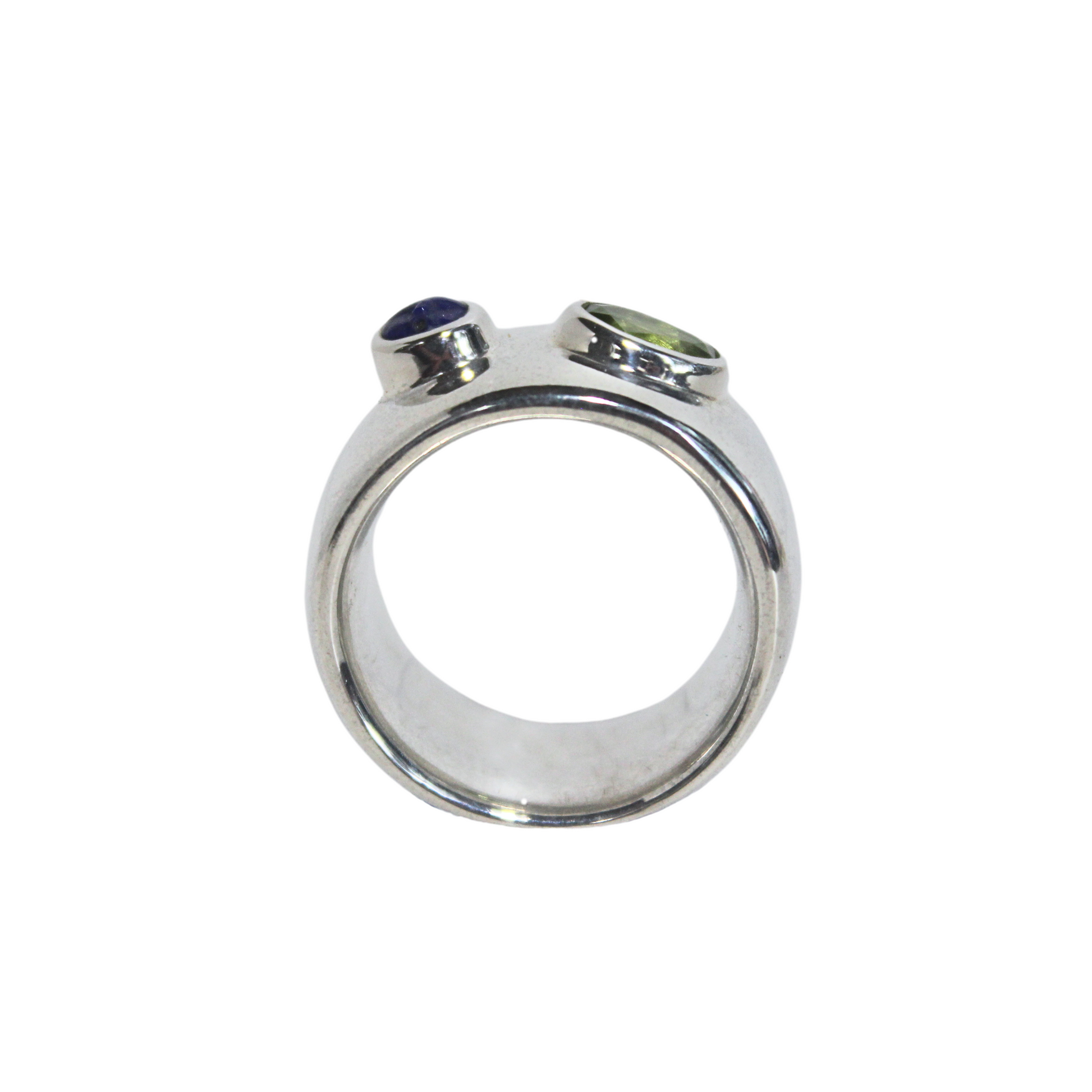 hand carved lapis lazuli face & peridot set in solid sterling silver